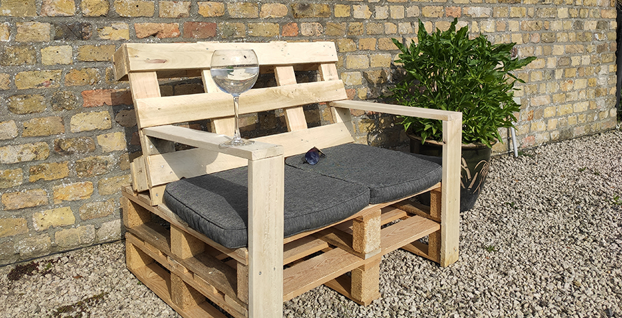 La manera más sencilla de fabricarlo es colocando dos o tres pallets, uno encima de otro. Para un modelo más completo, se puede utilizar otro a manera de respaldo.